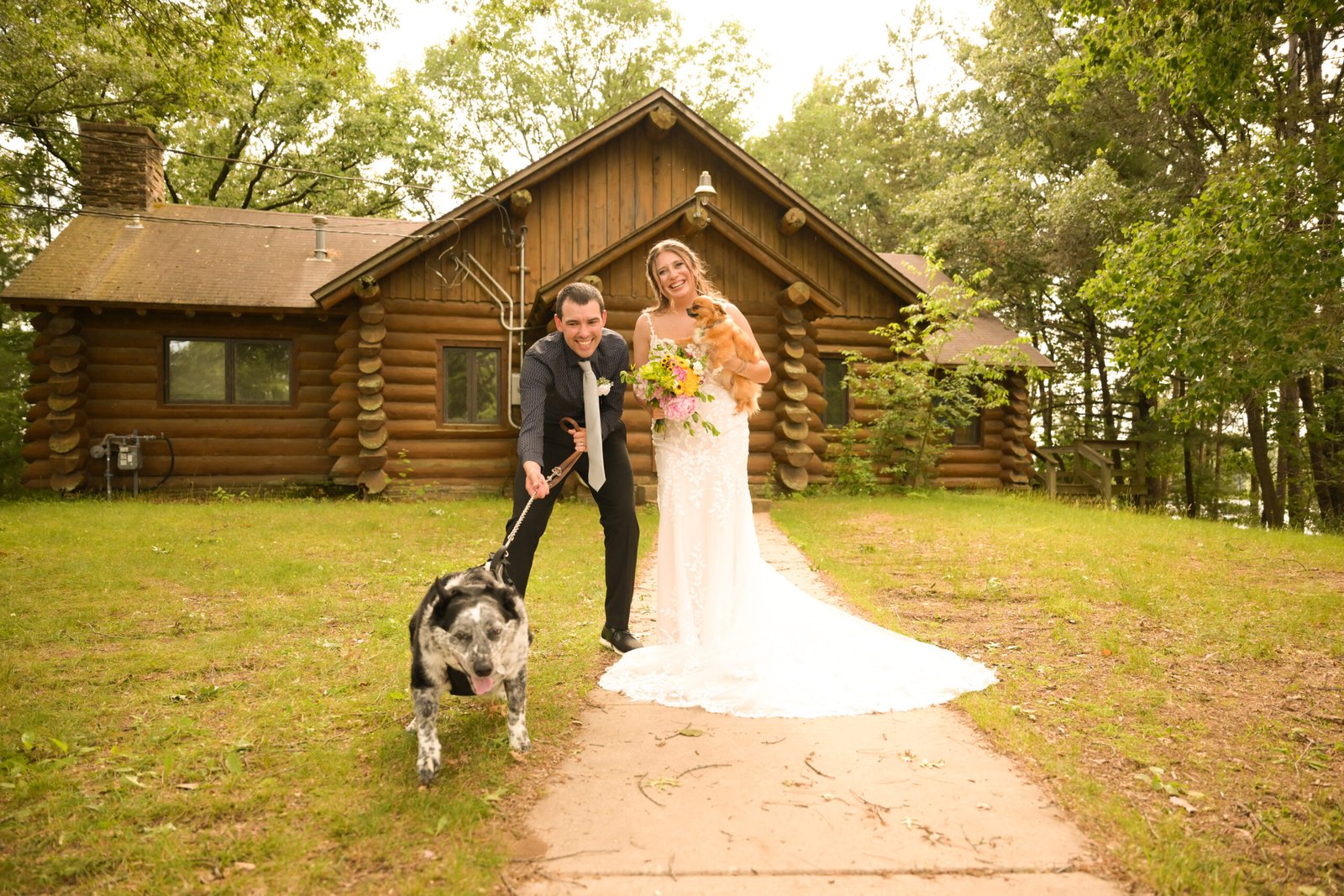 A sweet, maybe sweaty and sunny day at Camp Alexander in Wisconsin Rapids with their beloved pups, Max and Kiki. Kiki took some of the spotlight as she ran into Briannas arms during the ceremony, receiving "Aww" from every direction. The vibes were family friendly and nature oriented.